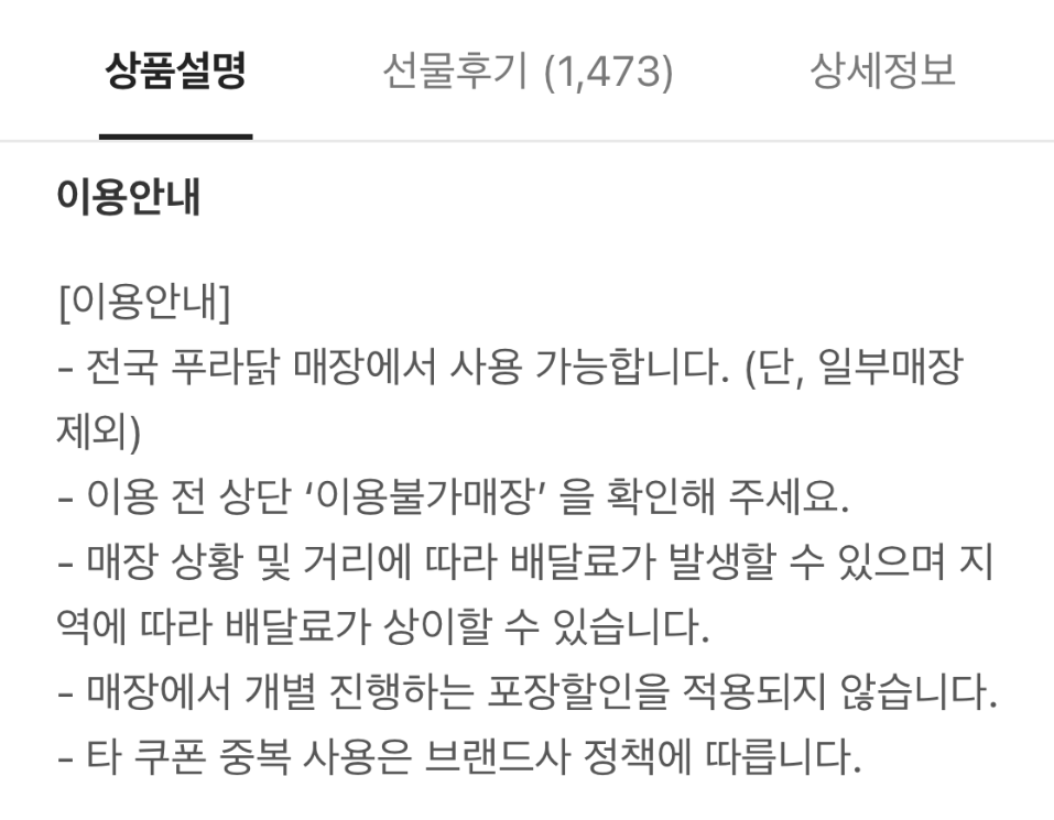 보통 기프티콘은 사용법이 상품설명 상세페이지란의